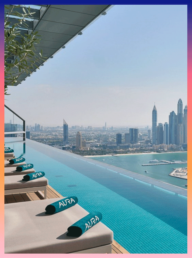Si tu cherches le spot le plus stylé de Dubaï, direction Aura Skypool ! Perchée au 50ᵉ étage de la Palm Tower, cette piscine à débordement unique t’offre une vue panoramique à 360° sur la skyline. À 200 mètres d’altitude, tu peux admirer des icônes comme le Burj Al Arab, le Burj Khalifa et même la grande roue Ain Dubai. Que tu viennes pour chiller ou faire des photos incroyables, l’expérience est juste dingue ! Les tarifs varient selon le créneau et l’endroit où tu veux t’installer, alors mieux vaut réserver à l’avance. Pour un moment inoubliable à Dubaï, Aura Skypool est un incontournable !